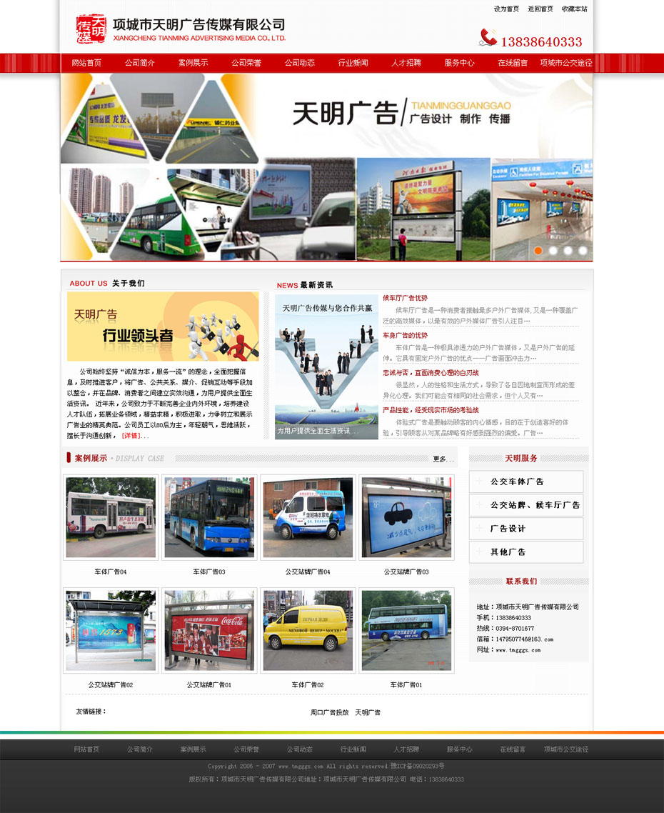 案例介紹:項城市天明廣告?zhèn)髅接邢薰境闪⒂?004年,前身為項城市公交公司廣告部。是專注于公交傳媒的專業(yè)戶外廣告公司,獨家擁有公交車傳媒資源200多臺、210多座公交候車亭燈箱、近300個公交站牌的廣告經營發(fā)布權,另有2000多平方的戶外大型廣告牌10余處。提供廣告設計、制作、發(fā)布、監(jiān)測、維護的一體化全程服務。