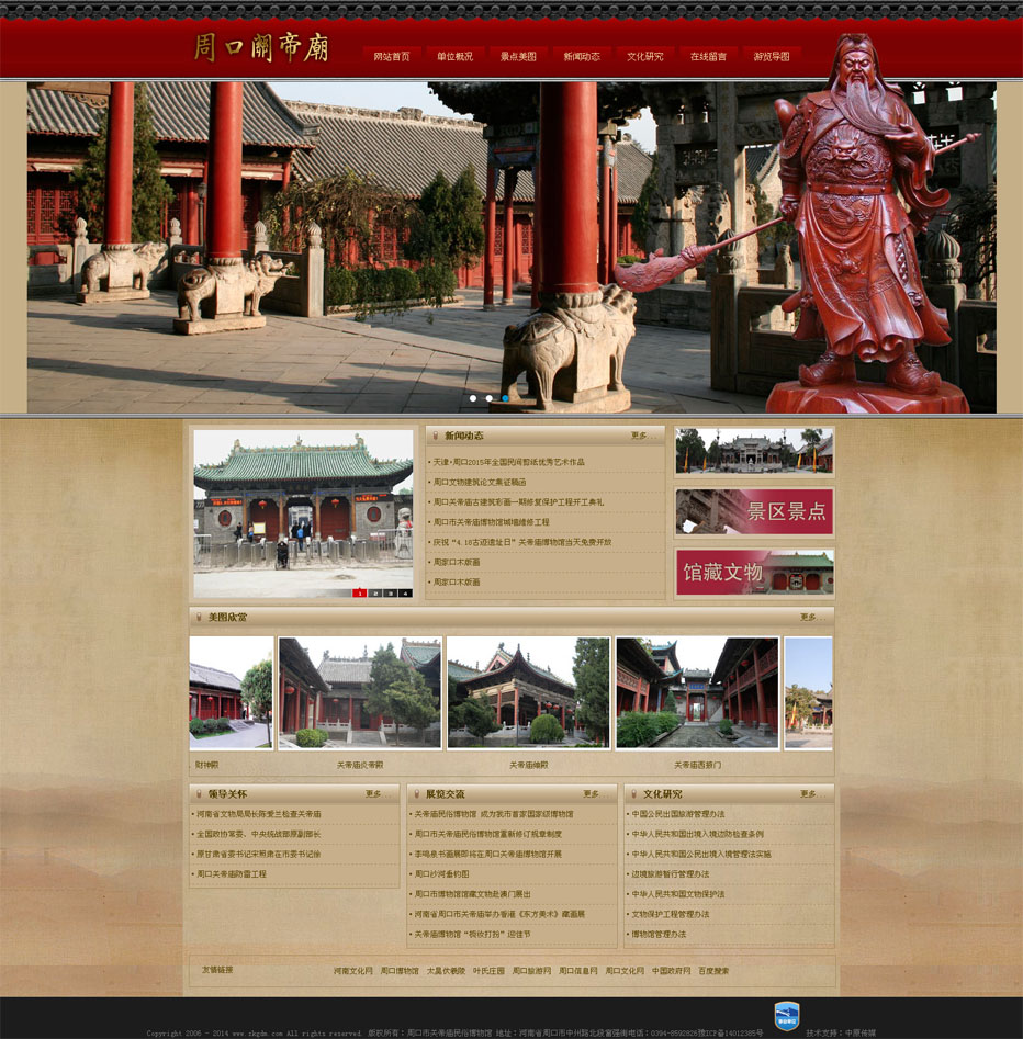 案例介紹:周口關(guān)帝廟位于周口市富強街,座北面南,始建于清康熙三十二年,(公元1693年),后經(jīng)雍正、乾隆、嘉慶、道光年間屢次擴建、重修,于咸豐二年(公元1852年)全部落成,歷時159年。整個廟宇為三進院落,占地約21600多平方米,現(xiàn)存樓廊殿閣140余間。